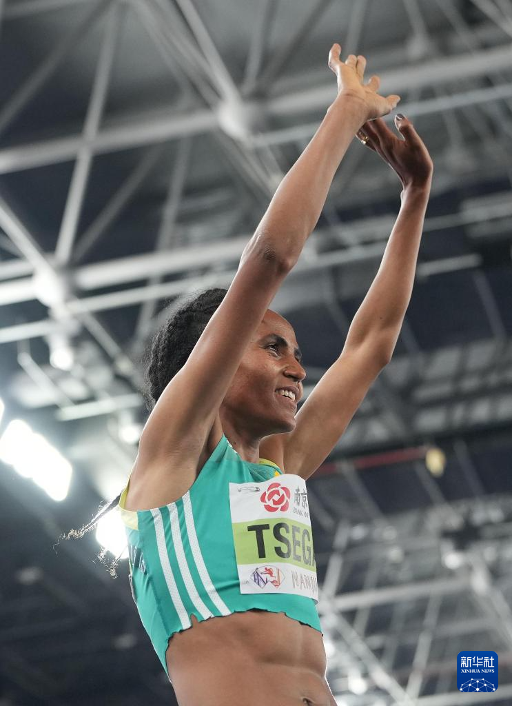 3月23日,埃塞俄比亚选手策盖在决赛后庆祝。她最终获得冠军。
