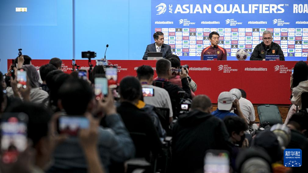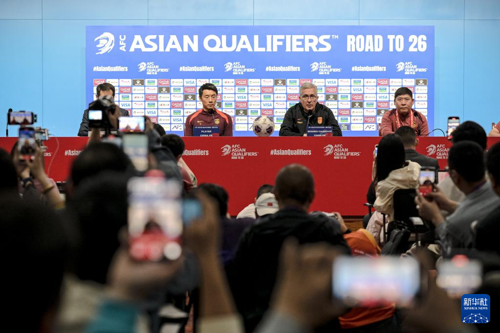当日,中国国家男子足球队在浙江杭州举行新闻发布会并进行赛前训练。中国队将于25日在2026美加墨世界杯亚洲区预选赛18强赛C组第八轮比赛中主场对阵澳大利亚队。