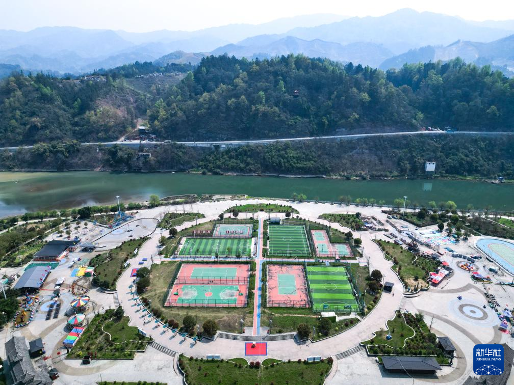 这是董永恒为榕江县的孩子们进行足球培训的场地(3月23日摄,无人机照片)。新华社记者 杨文斌 摄