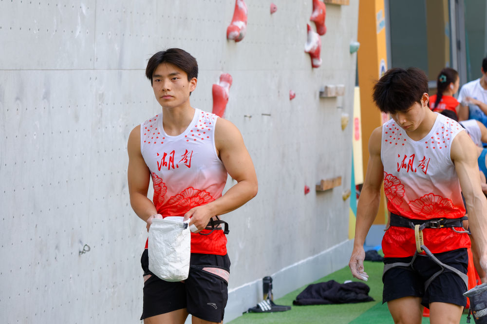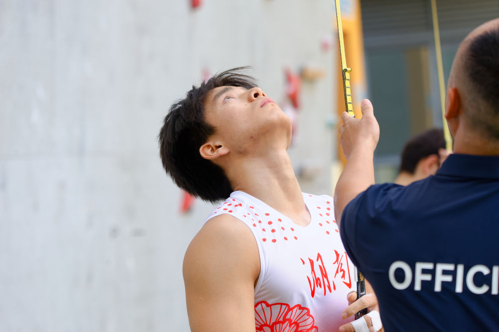 但伤势还是影响了他后续的训练。“刚伤的时候我拉引体都拉不了,只是挂在杠子上就疼;也爬不了,手就握在起步点上,不向上拉都疼。”伍鹏说,伤后一周,他尝试开始恢复攀爬,训练成绩从近5秒40恢复到五秒零几,但手指伤势在攀爬中又有反复。比赛当天,他觉得自己热身热得很开,但比赛开始后,指根部位的疼痛让他无法发力。为防止二次受伤,他和教练组商议之后一致决定退出比赛。