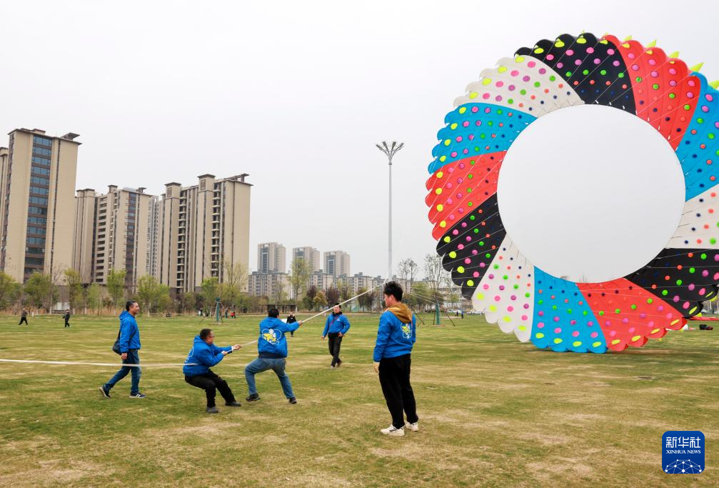 3月29日,参赛选手在活动现场放飞四线运动风筝。