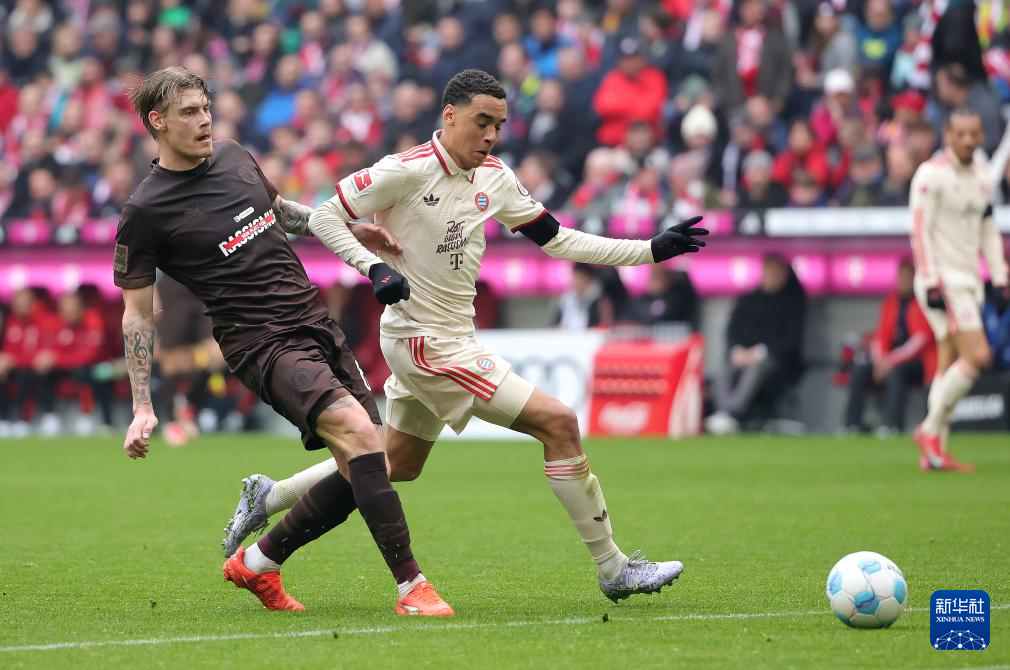 当日,在2024-2025赛季德国足球甲级联赛第27轮比赛中,拜仁慕尼黑队主场3比2战胜圣保利队。