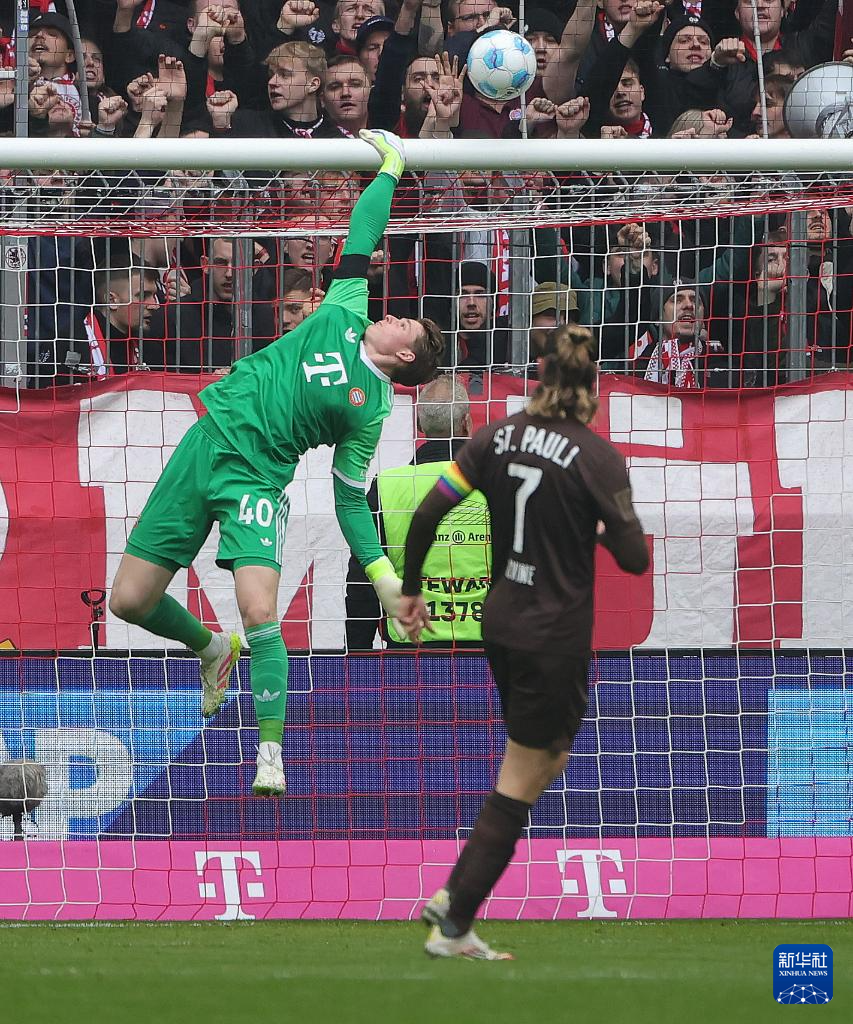3月29日,拜仁慕尼黑队守门员乌尔比希在比赛中扑救。新华社发(菲利普·鲁伊兹摄)