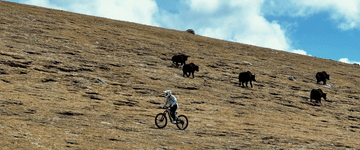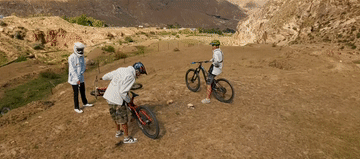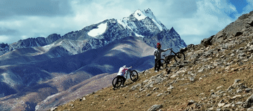 ↑旦增吉美和同伴在拉萨周边的山上速降骑行