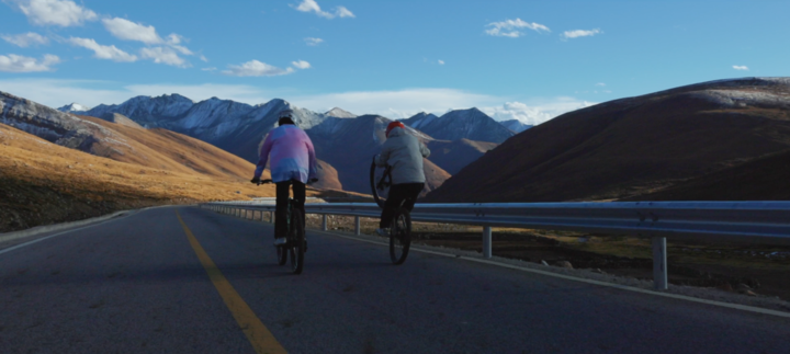 ↑旦增吉美(左)和队友在骑车的路上