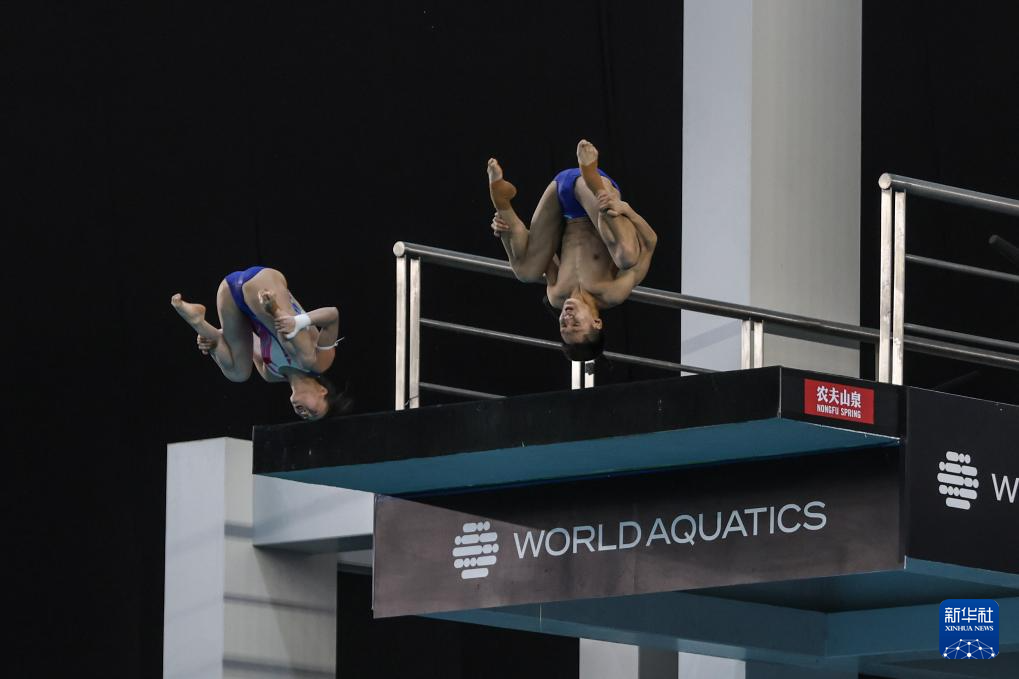 4月4日,中国队选手陈芋汐(左)/程子龙在比赛中。