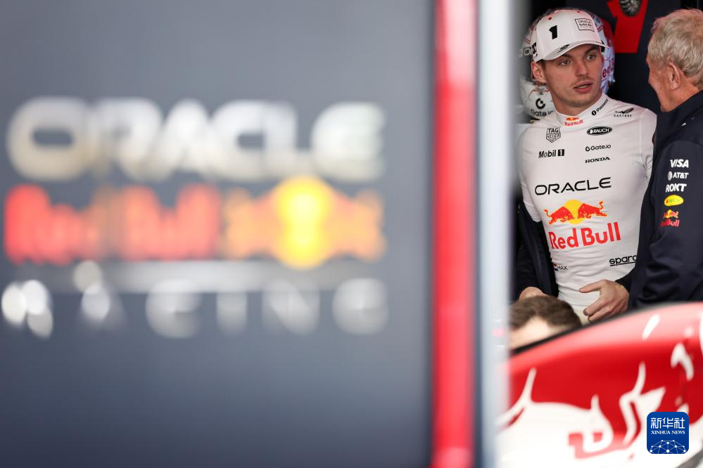 4月4日,红牛车队荷兰车手维斯塔潘(左)和队友日本车手角田裕毅在练习赛中。