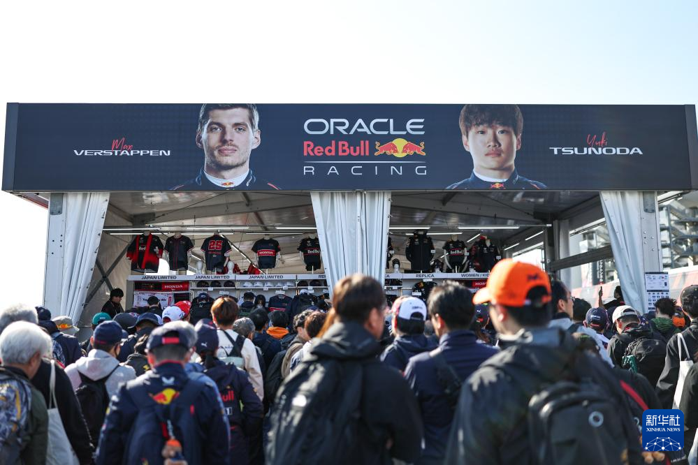 4月4日,人们在红牛车队纪念品商店门前排队。