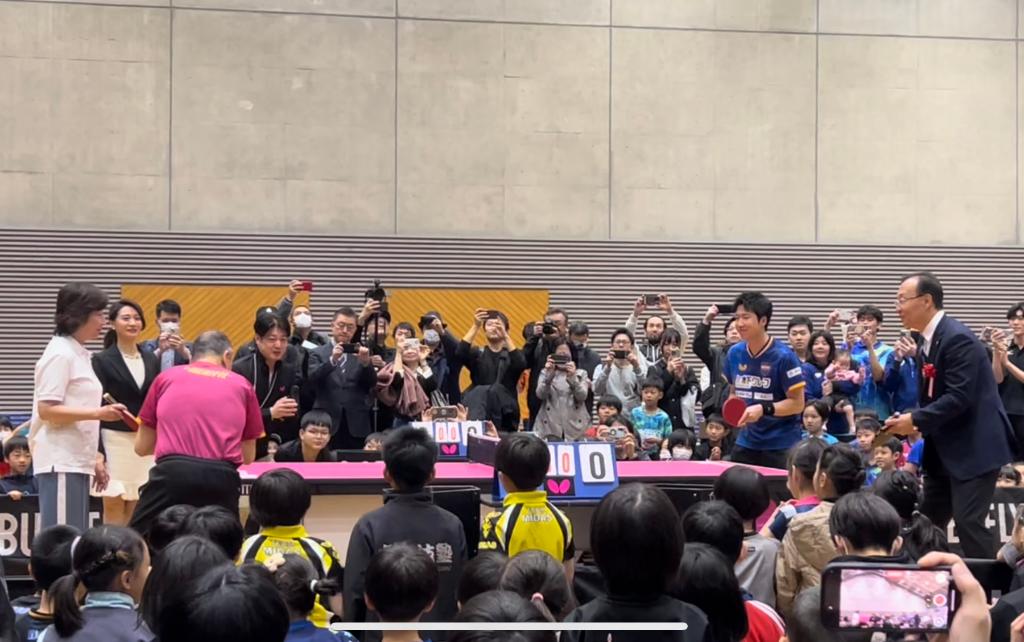 东京奥运会混双金牌得主水谷隼与日本前国手酒井明日翔等嘉宾为比赛开球,并为现场的乒乓球爱好者们奉献了一场精彩的表演赛。