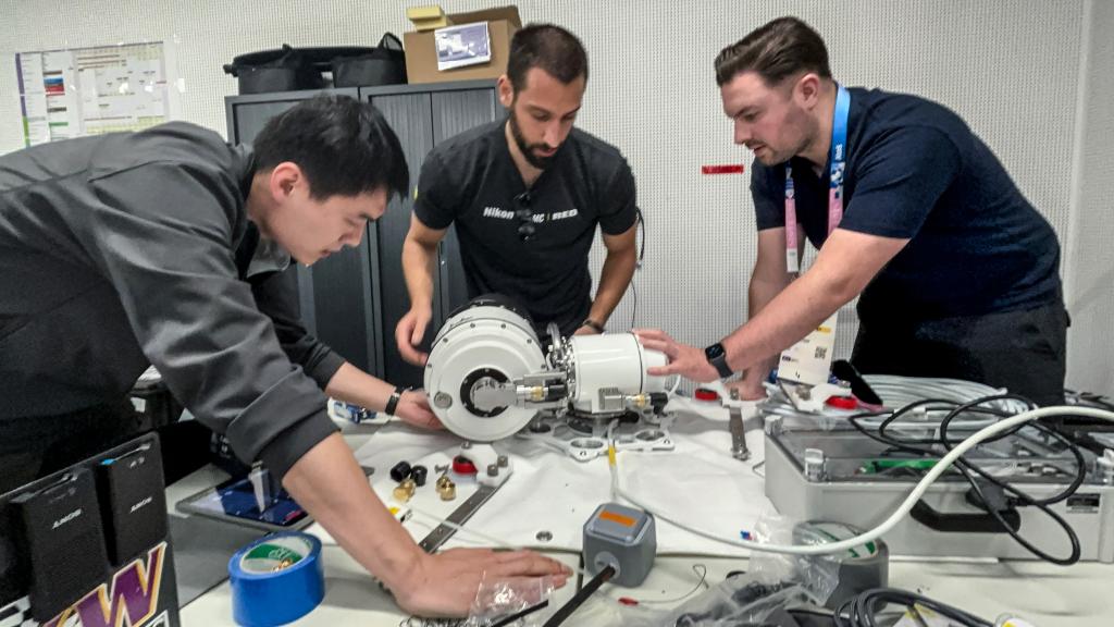 经过长期的市场调研以及与制造商的沟通,新华社为2024巴黎奥运会采购的是其中最为成熟的尼康MRMC水下机器人,其内置一台Z9相机,外壳通过一根50米长的脐带缆实现供电与数据传输,壳体内由4套步进电机驱动,分别负责横摇、俯仰、滚转、变焦,控制终端使用iPad配合尼康软件与游戏手柄,可实现实时监控、操作多台赛场内的机器人。