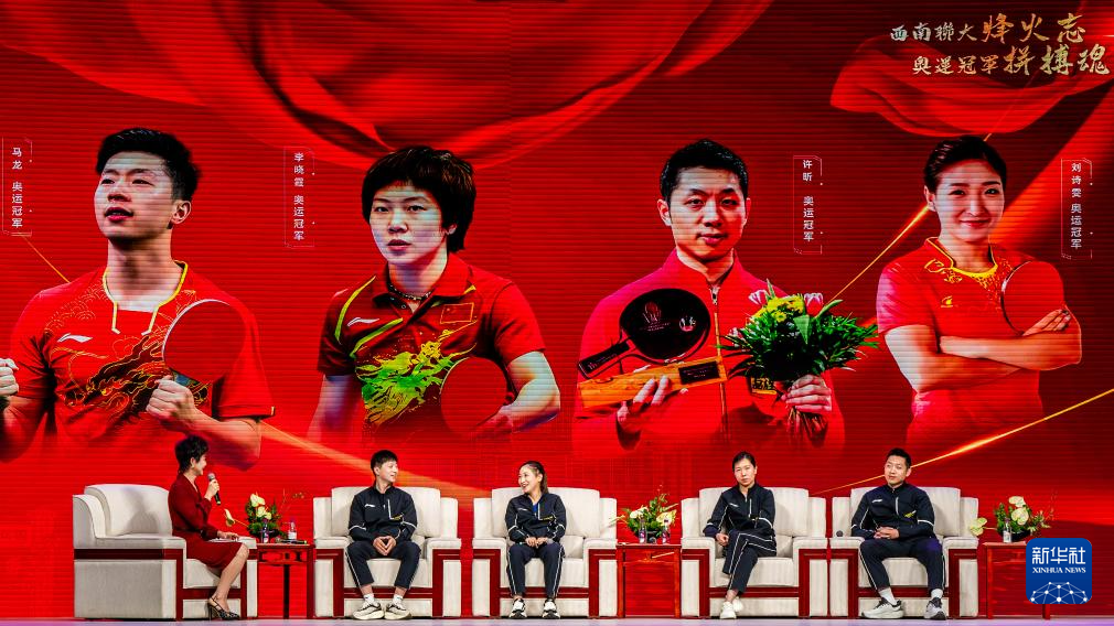 当日,“国球奥运冠军进校园”活动在云南师范大学举行。马龙、许昕、刘诗雯、李晓霞把国球精神带进校园,而西南联大教育救国的历史也为冠军们上了一堂爱国课。