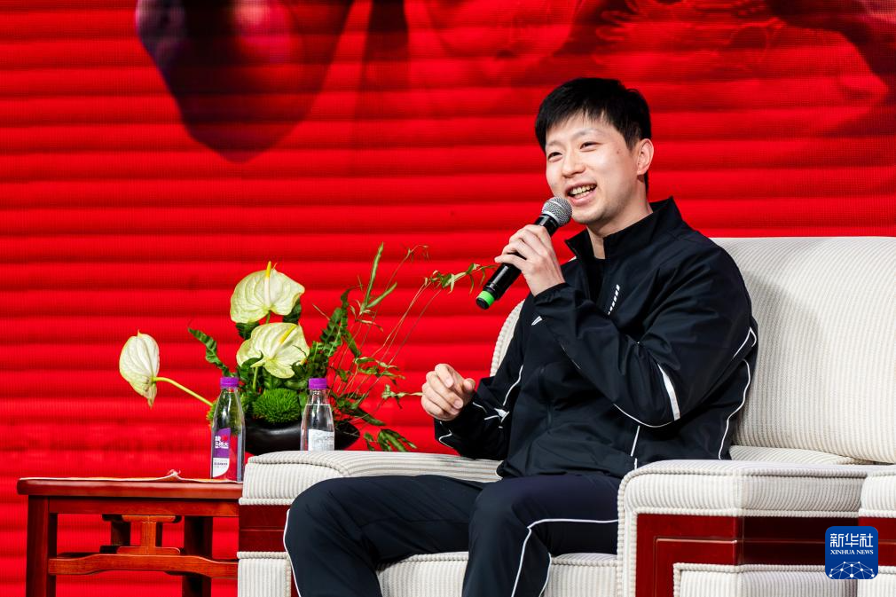 4月8日,马龙在云南师范大学实验中学和学生分享成长故事与心路历程。