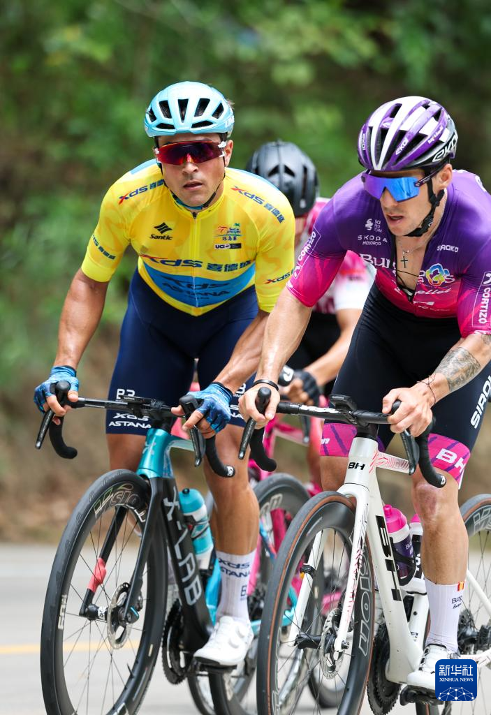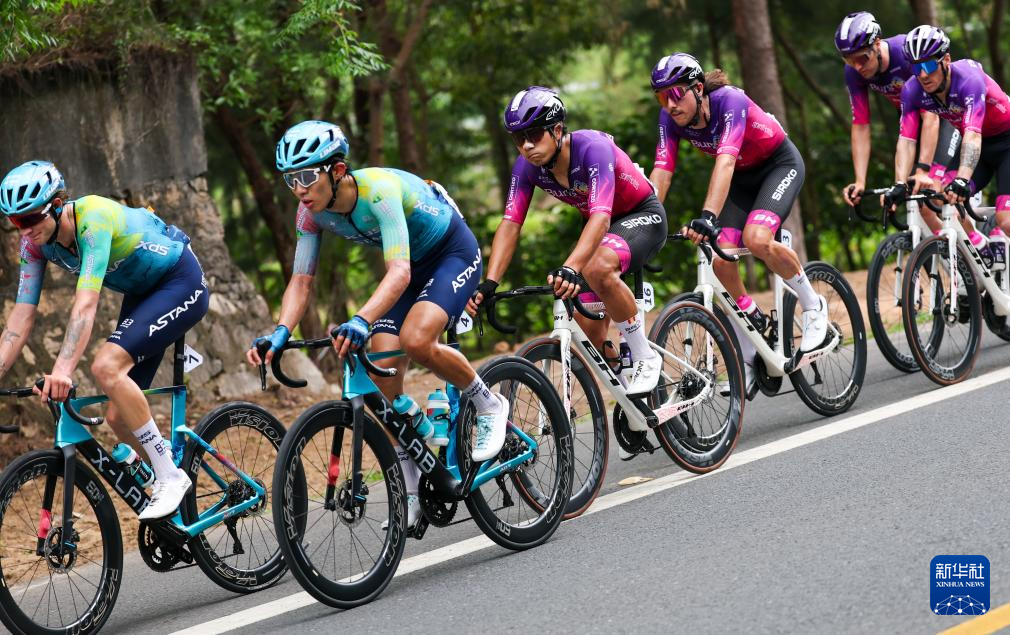 4月8日,喜德盛阿斯塔纳车队车手苏浩钰(左二)在比赛中。