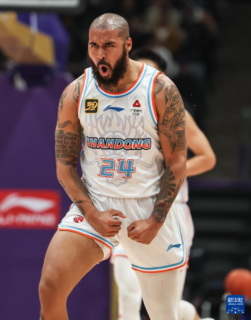 4月8日,山东高速队球员摩尔在比赛中庆祝得分。