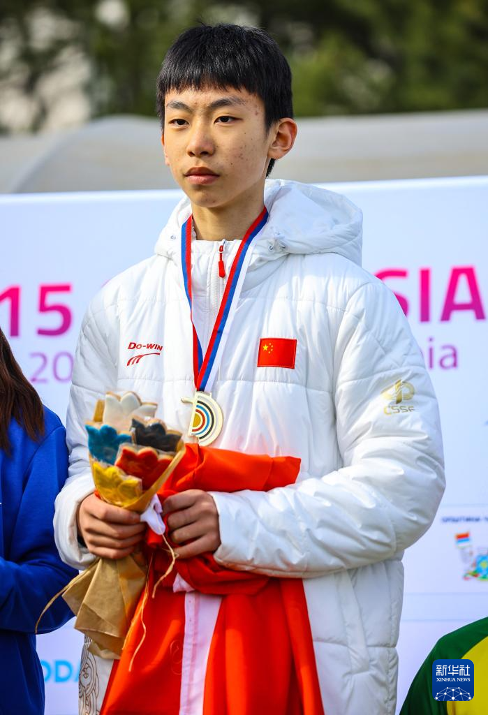 当日,在2025年U15世界中学生夏季运动会射箭项目反曲弓国际混合团体决赛中,孙浩洋(中国)/马马德利(阿塞拜疆)获得冠军。