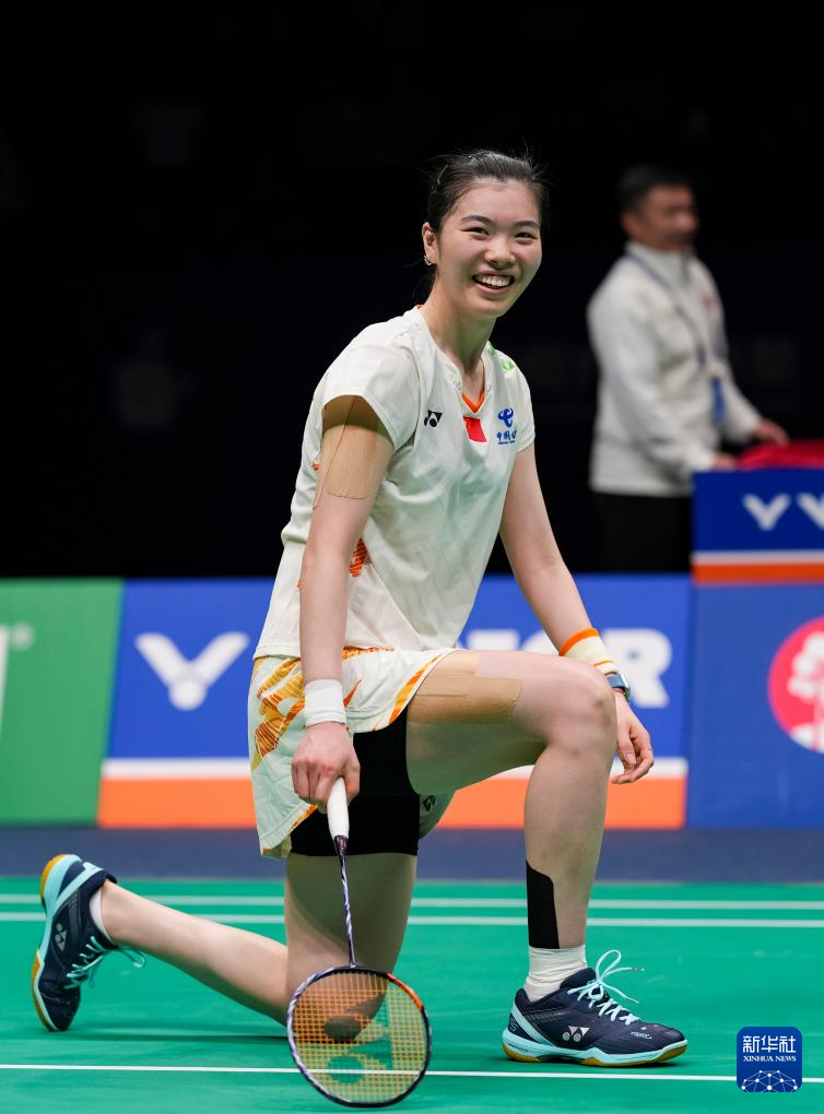 4月11日,高昉洁在比赛中观察羽毛球落点。