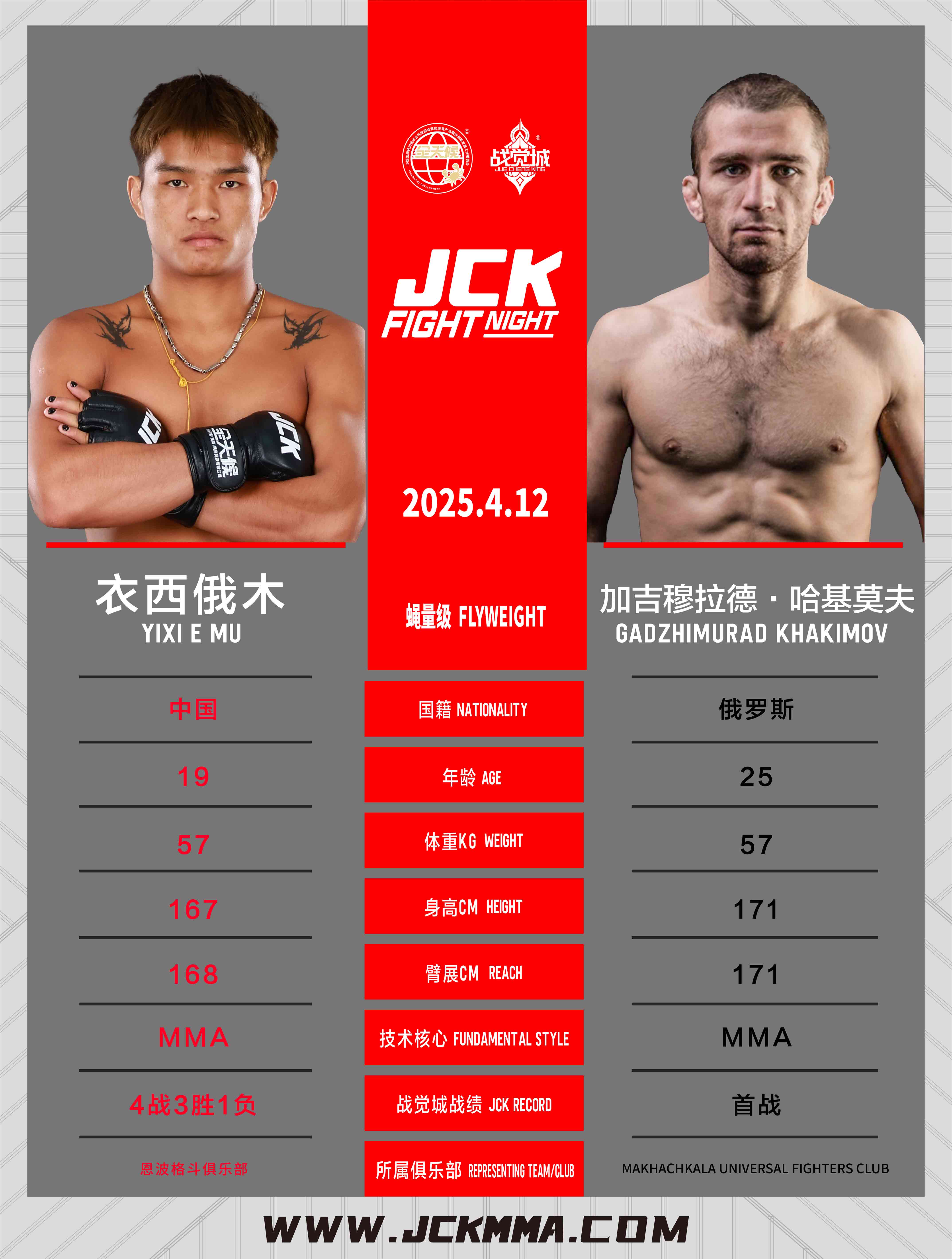 2025年4月12日,“阳光威宁·浪漫草海”JCK觉城之夜N97华武元宇联合赛贵州威宁站将拉开帷幕,头条主赛腾力格迎战哈萨克斯坦锦标赛冠军多斯波尔 埃莱根,联合主赛吴泽与尼基塔·巴尔塔巴耶夫对决,正赛部分衣西俄木迎战加吉穆拉德·哈基莫夫、张育赫对战亚历山大·齐里亚诺夫、李洪基迎战叶德力·木黑亚提。