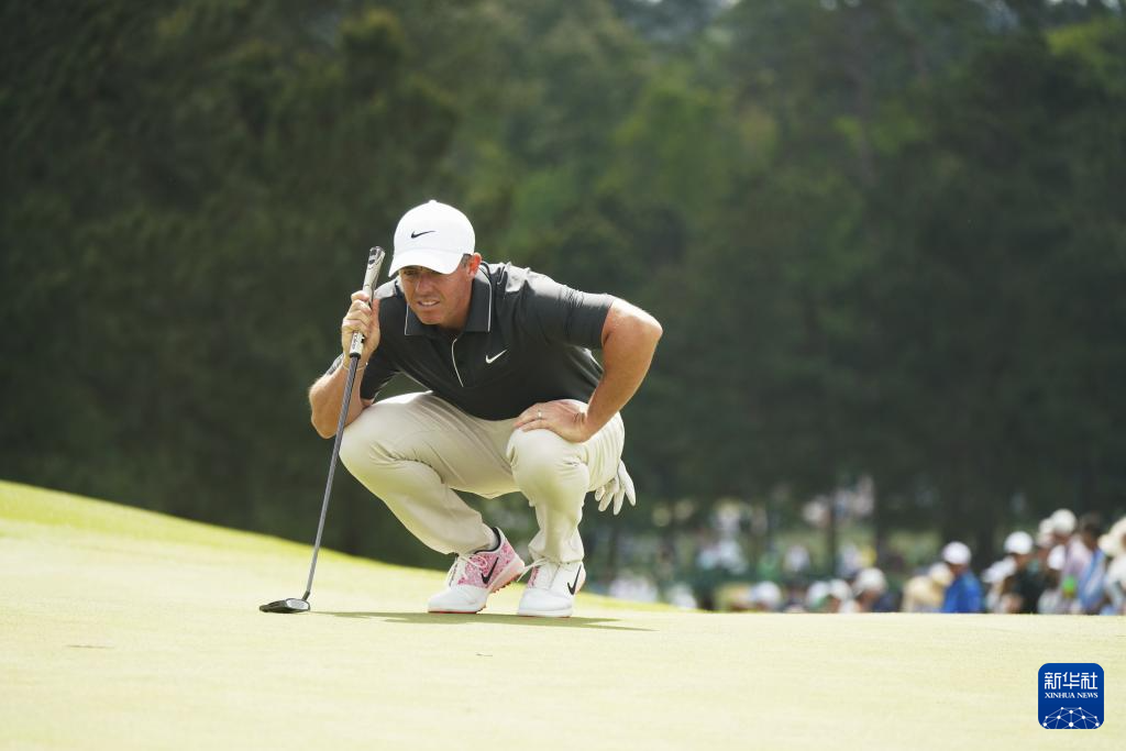 4月11日,北爱尔兰选手罗里·麦克罗伊在第二轮比赛中观察击球路线。新华社记者 吴晓凌 摄