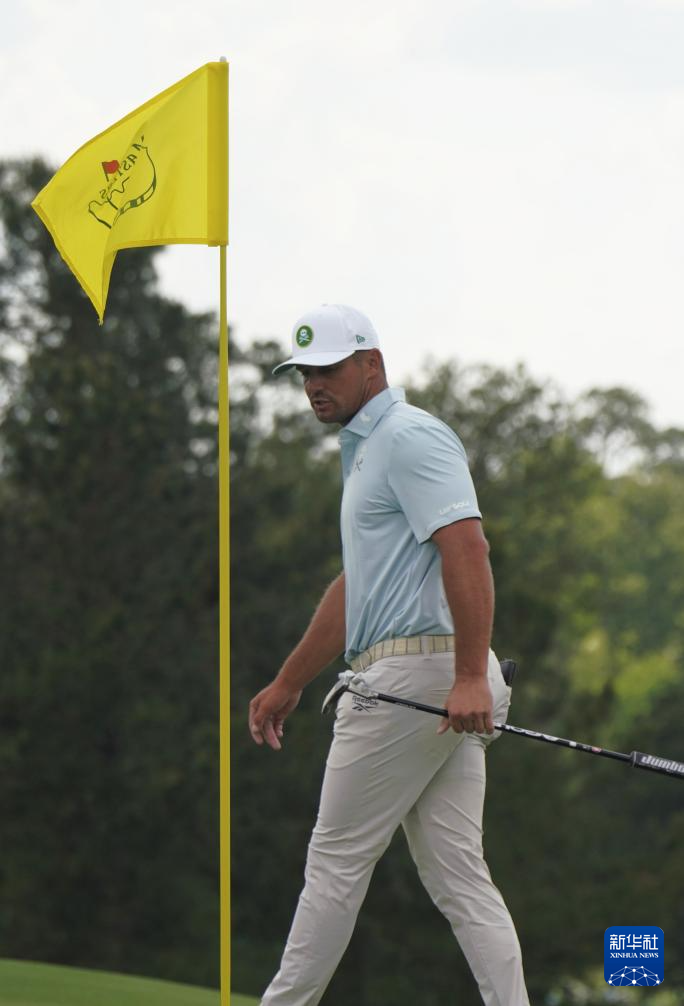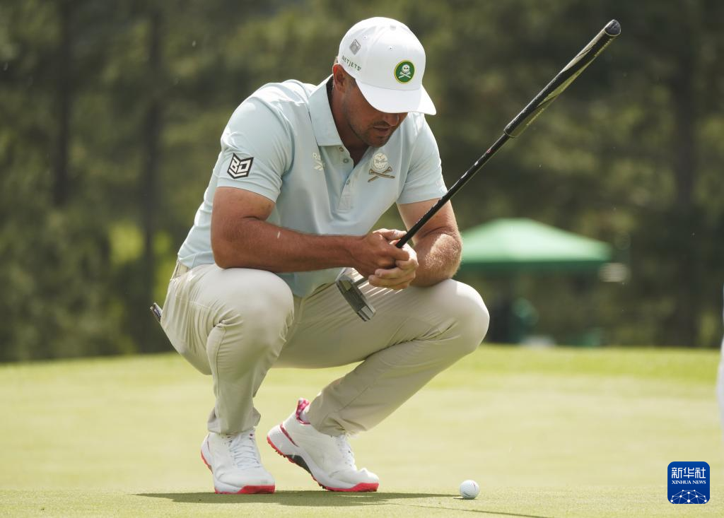 4月11日,美国选手布赖森·德尚博在第二轮比赛中观察击球路线。新华社记者 吴晓凌 摄