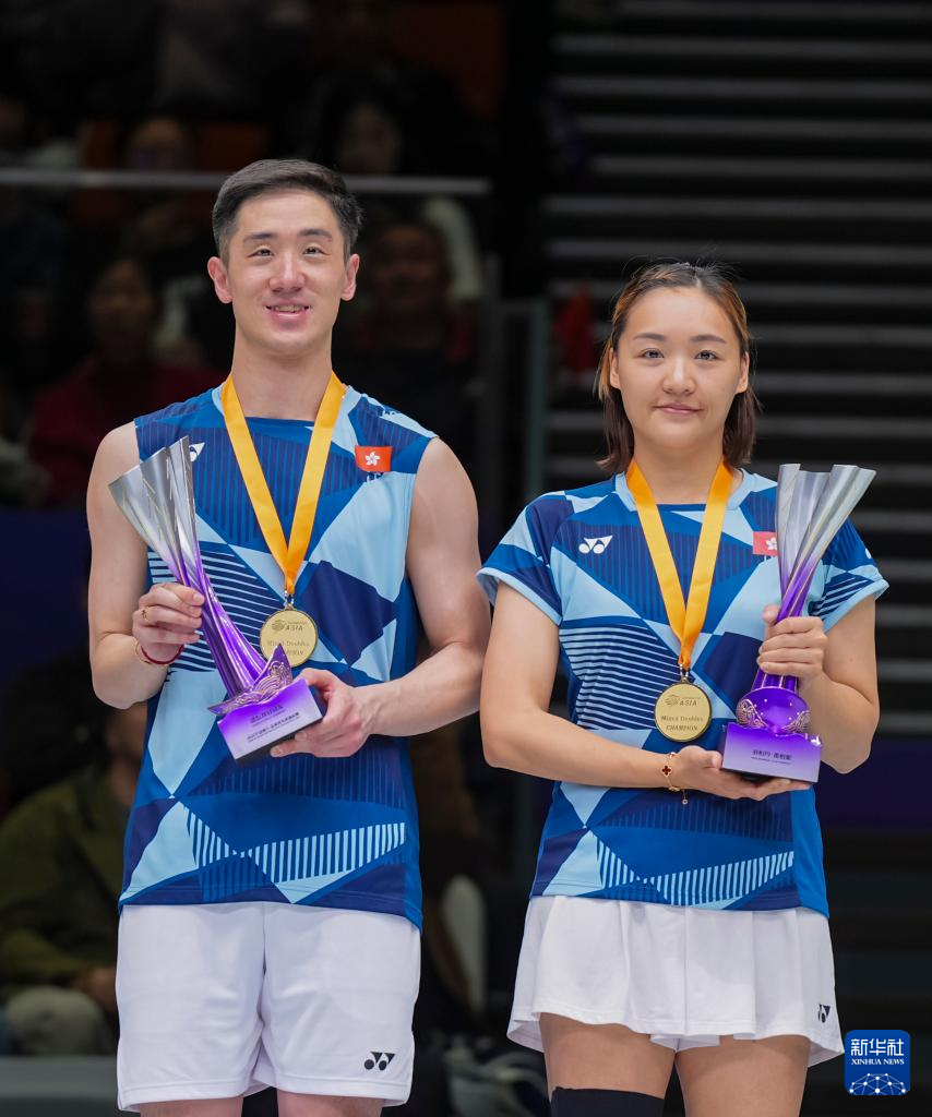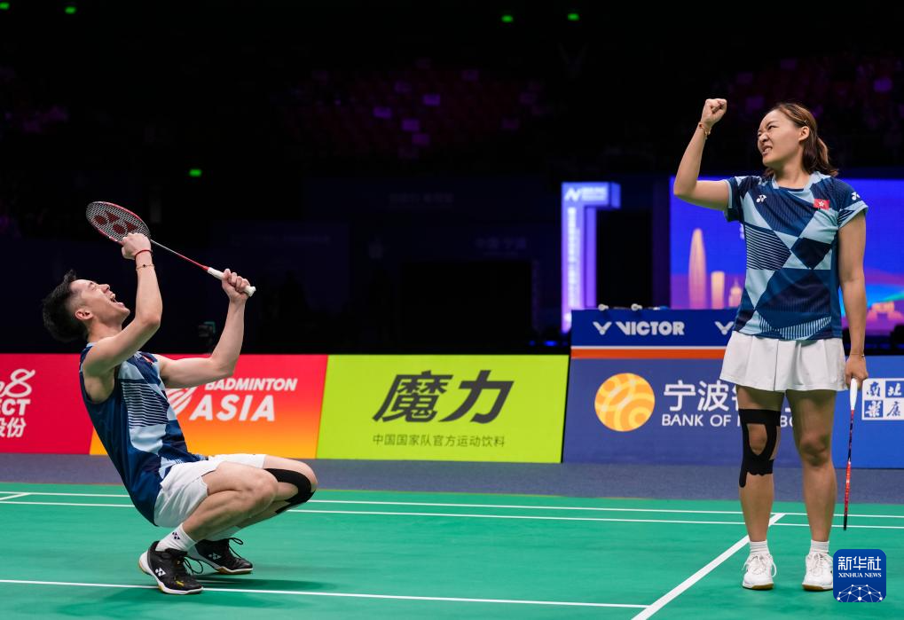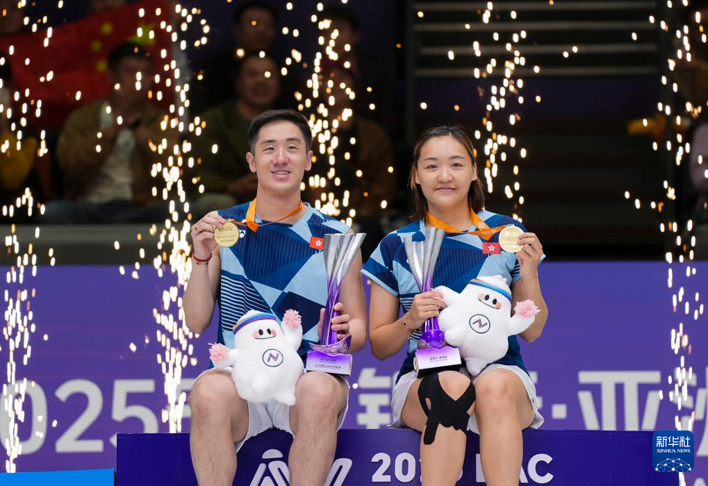 当日,在浙江宁波举行的2025亚洲羽毛球锦标赛混合双打决赛中,中国香港组合邓俊文/谢影雪2比1战胜日本组合绿川大辉/斋藤夏,夺得冠军。