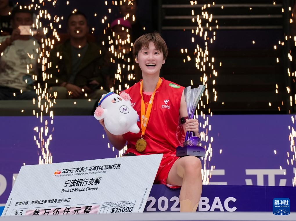 当日,在浙江宁波举行的2025亚洲羽毛球锦标赛女子单打决赛中,中国选手陈雨菲2比1战胜队友韩悦,夺得冠军。