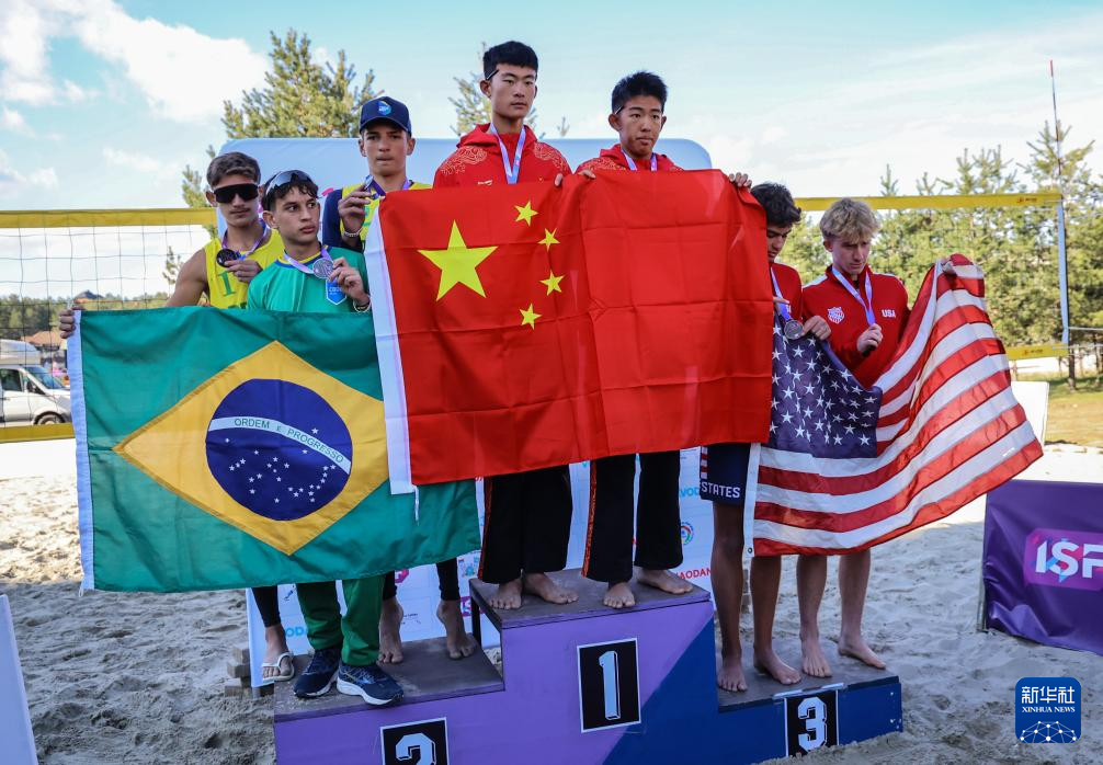 当日,在2025年U15世界中学生夏季运动会沙滩排球男子组决赛中,中国组合马祥瑞/辛志淼战胜巴西组合坎波斯/明斯基/索萨,获得冠军。