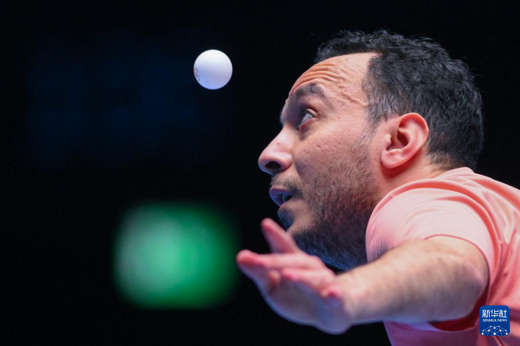 4月15日,埃及选手穆罕默德·埃尔贝亚利在比赛中发球。