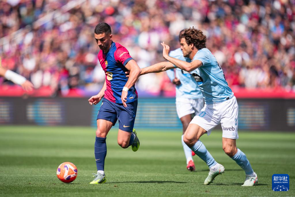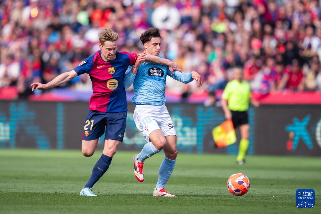 当日,在2024-2025赛季西班牙足球甲级联赛第32轮比赛中,巴塞罗那队主场4比3战胜塞尔塔队。