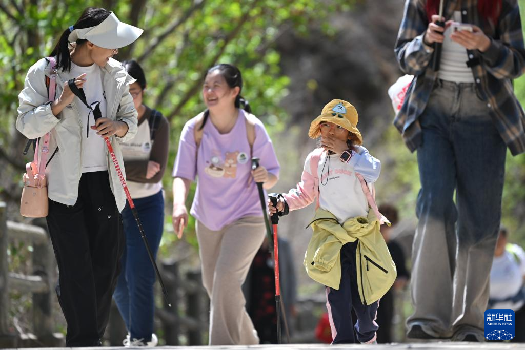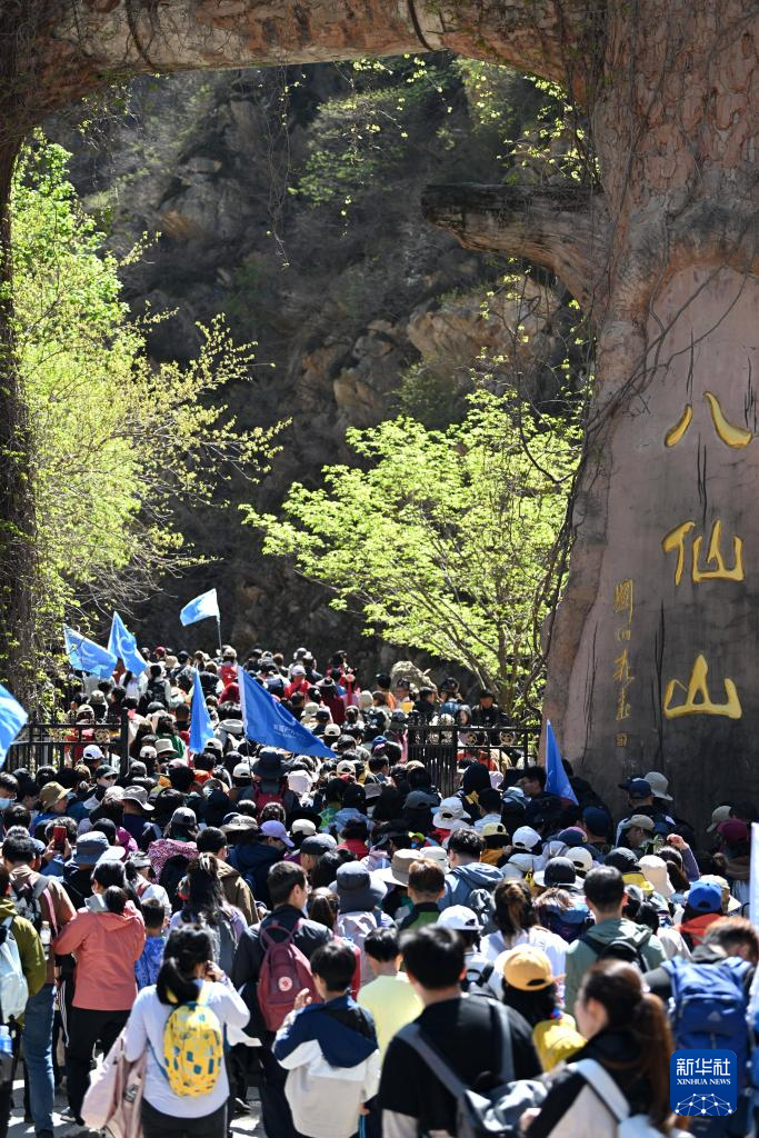 当日,800余名健身爱好者参加天津市蓟州区八仙山首届登顶大会,在徒步登山中共享春光。