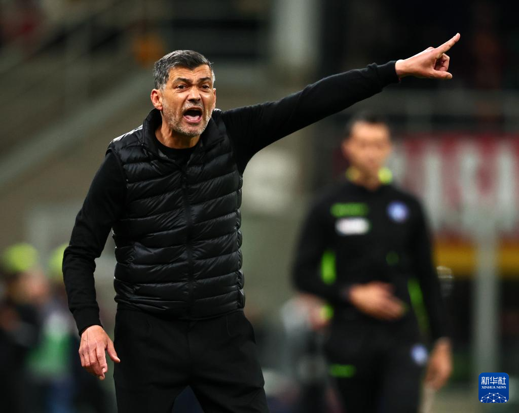 4月20日,AC米兰队主教练孔塞桑在场边指挥。