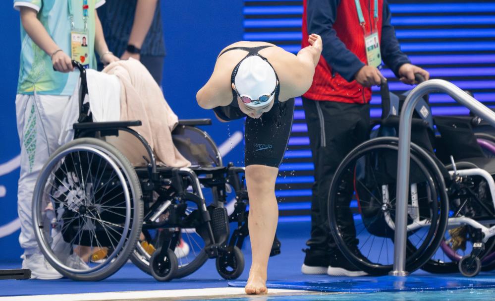 ↑2024年9月7日,蒋裕燕在巴黎残奥会女子100米仰泳S6级决赛中,最终她以1分19秒44的成绩打破世界纪录获得冠军。 新华社记者 高静 摄