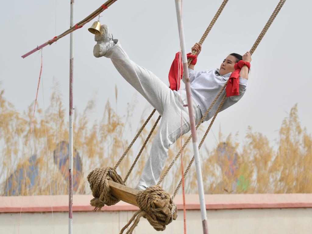 这是关乎勇气的挑战,同时也是一年一度的新疆于田县少数民族传统体育运动会上唯一全部由女性参与的项目。