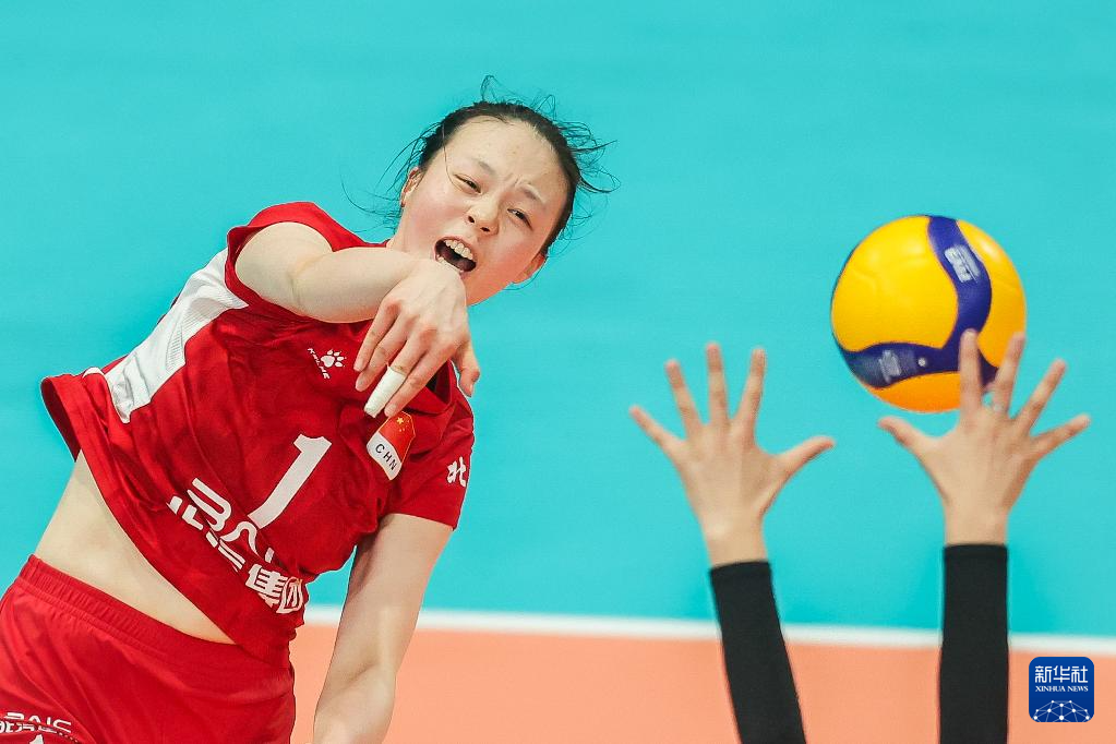 4月26日,北汽女排俱乐部队球员逯雨菲在比赛中。