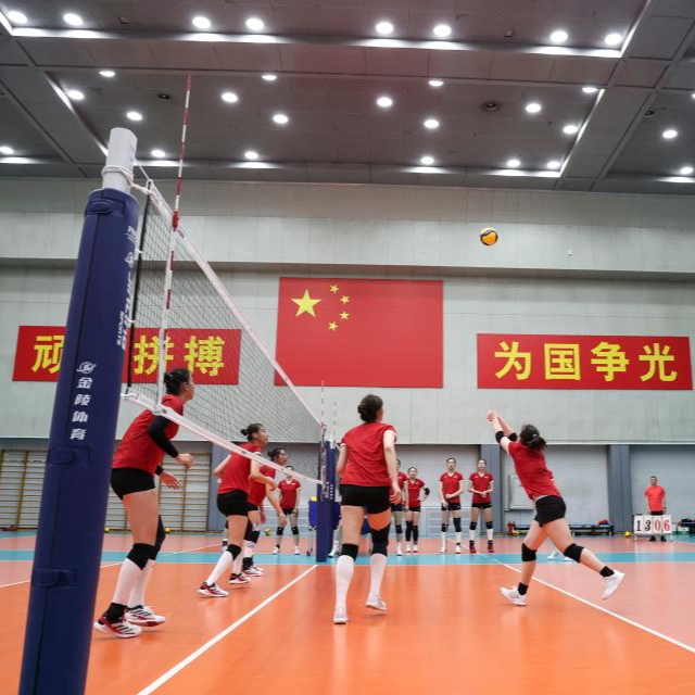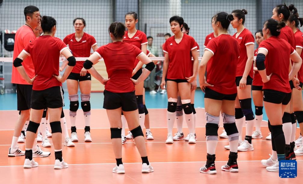 当日,新一届中国国家女子排球队在北京举行公开训练课。