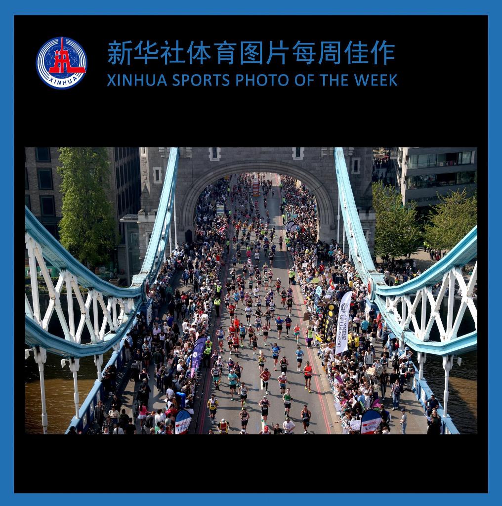 4月27日,选手们从伦敦塔桥上跑过。