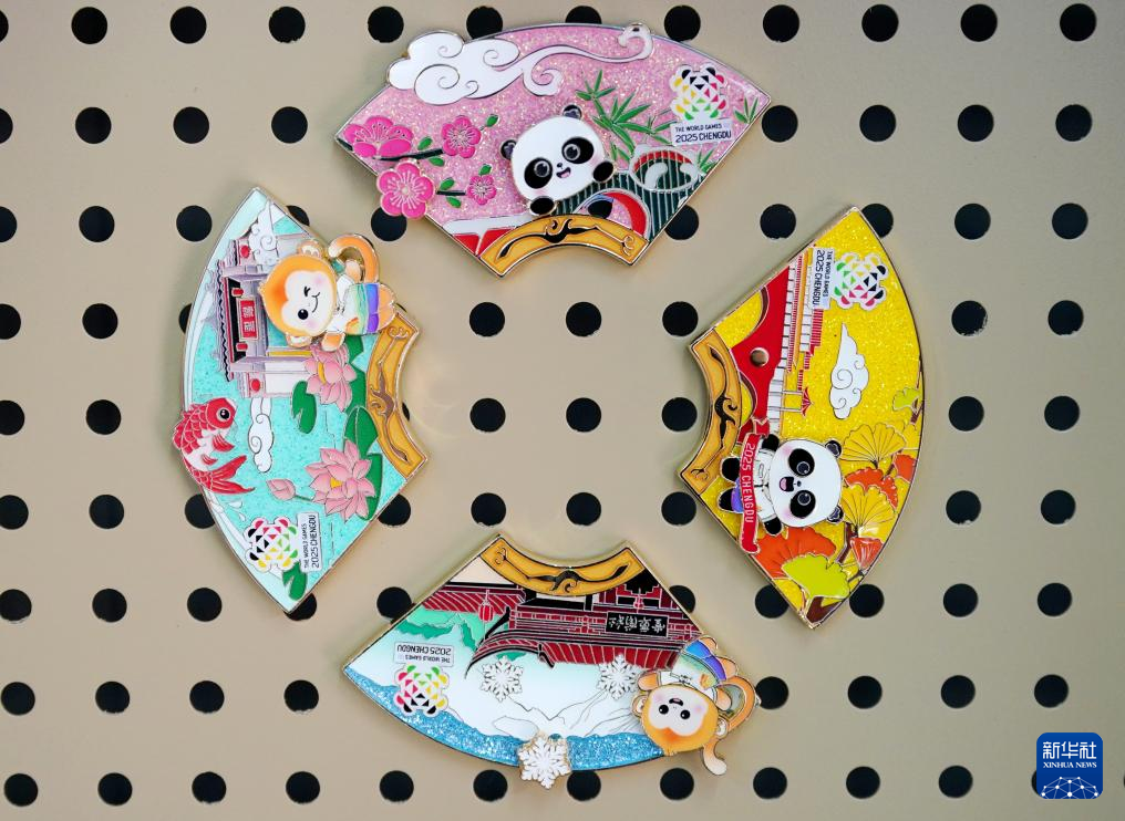 这是4月29日在成都世运会官方特许商品零售店“北京首店”拍摄的吉祥物四季冰箱贴。