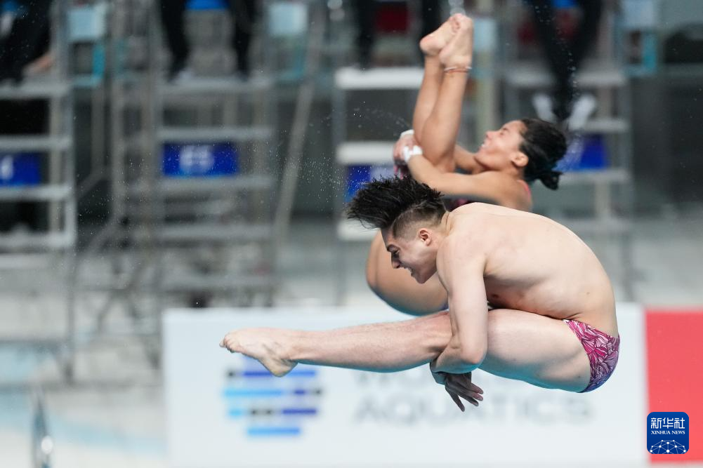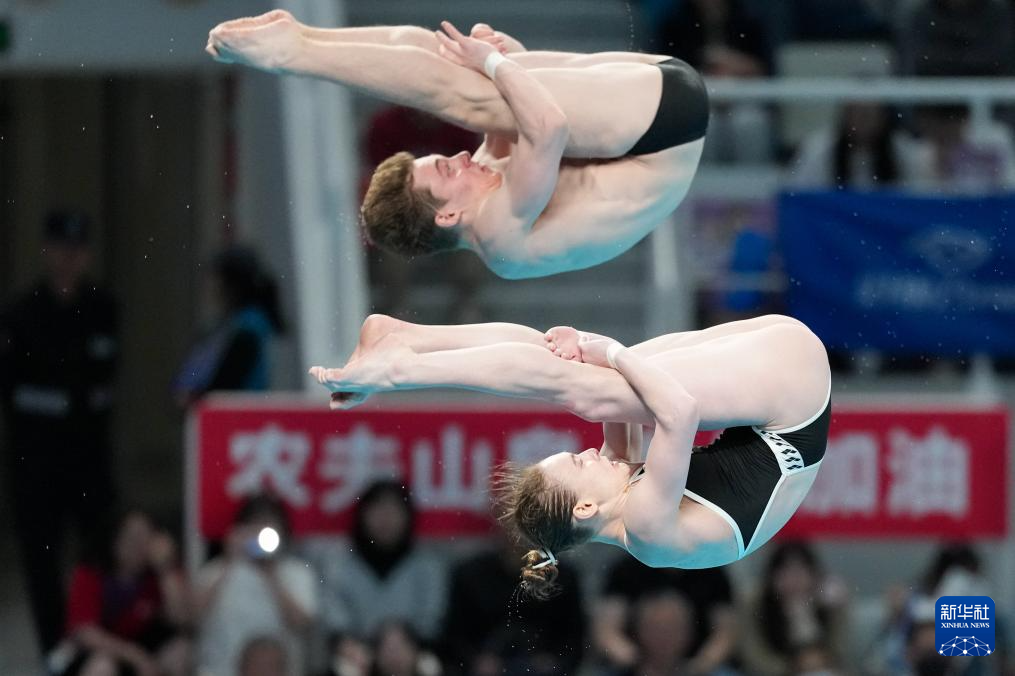 5月2日,中国队选手陈芋汐(前)/程子龙在比赛中。