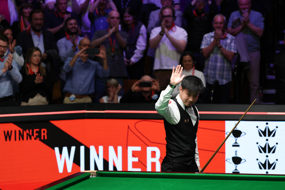两人将在4、5两日为这一赛季收官战的冠军一争高下。如果威廉姆斯在35局18胜的决赛中胜出,他就将成为年纪最大的世锦赛冠军。在他之前的最年长冠军是2022年以46岁的年纪夺魁的奥沙利文。如果赵心童笑到最后,他将成为世锦赛历史上第一位夺冠的亚洲球员。拿下半决赛,他已追平了丁俊晖创造的亚洲球员世锦赛最佳战绩。