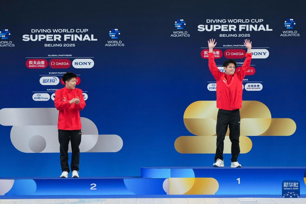 当日,在北京举行的2025年世界泳联跳水世界杯总决赛男子10米台决赛中,中国选手朱子锋、程子龙分获冠、亚军。