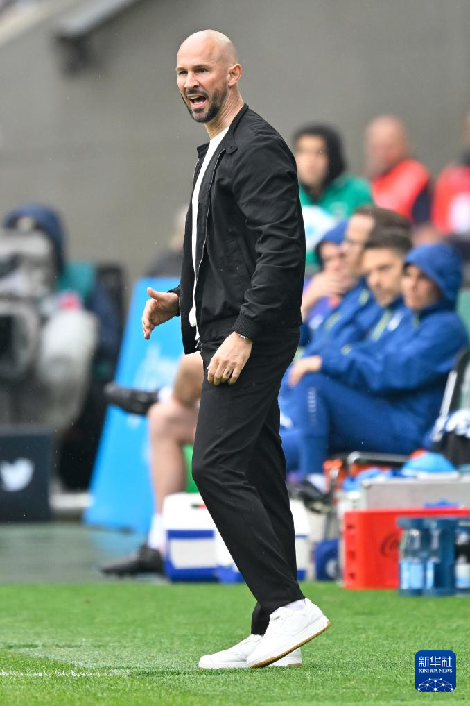 5月3日,门兴格拉德巴赫队主教练塞瓦内在场边指导。