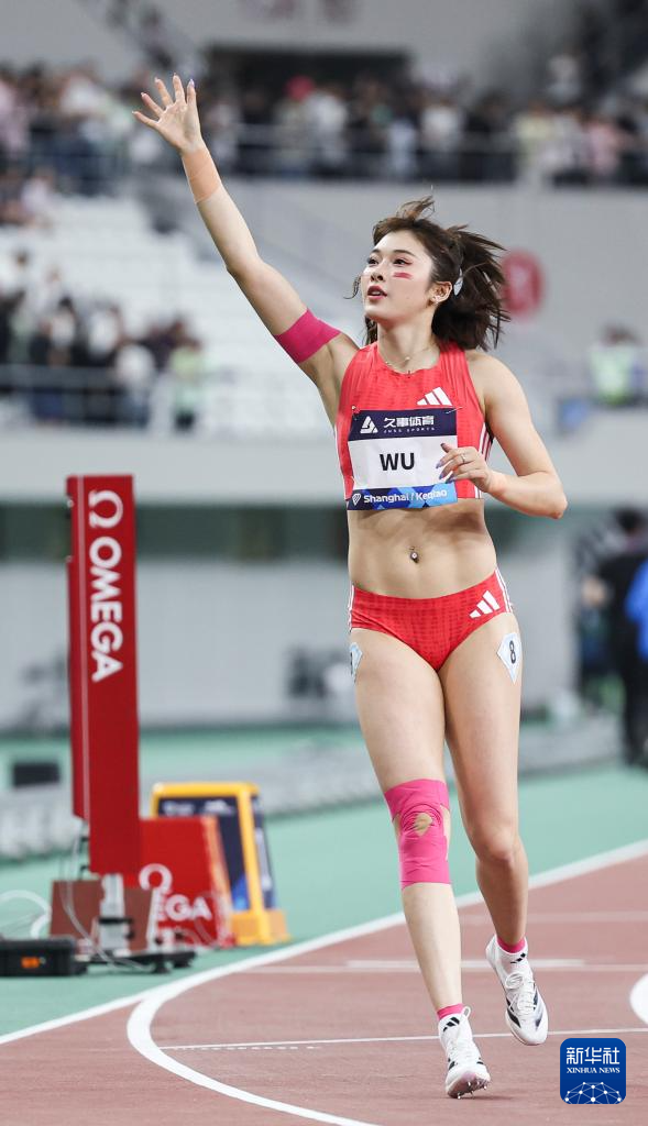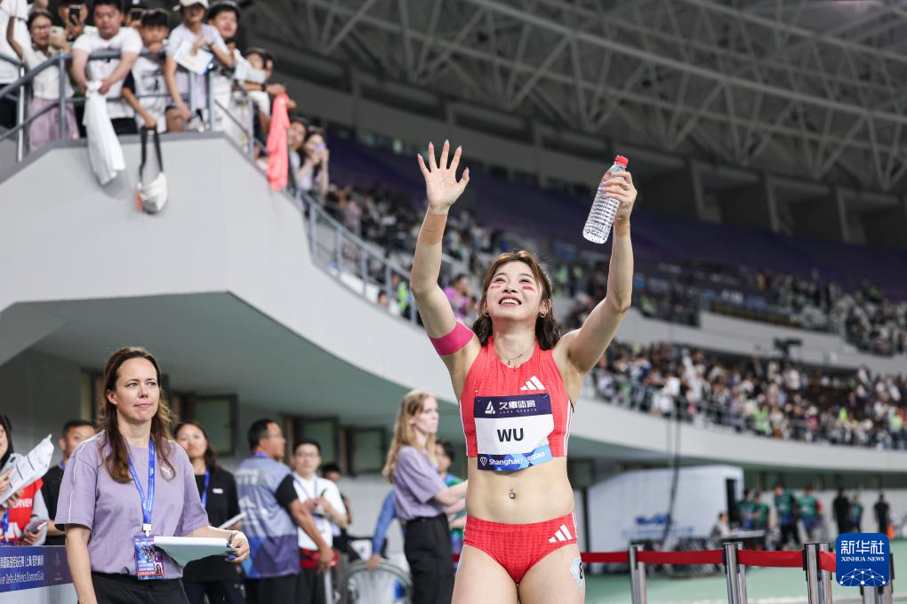 5月3日,中国选手吴艳妮在女子100米栏赛后向观众致意。她以12秒96的成绩获得第八名。