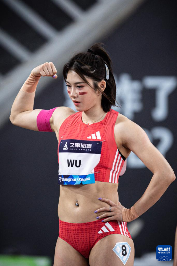 5月3日,中国选手吴艳妮在女子100米栏比赛前。她以12秒96的成绩获得第八名。