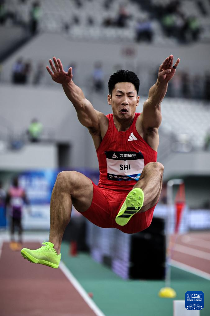 5月3日,中国选手石雨豪在男子跳远比赛中。他以8.21米的成绩获得冠军。
