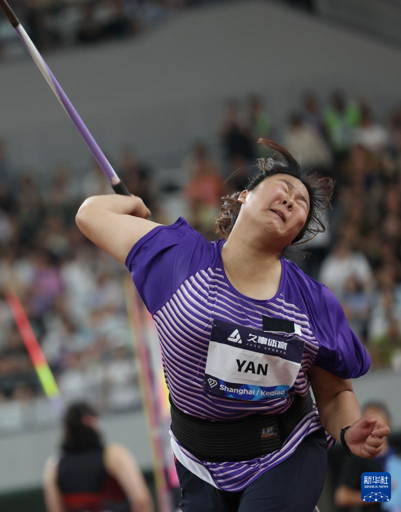 5月3日,中国选手严子怡在女子标枪比赛中。她获得第五名。