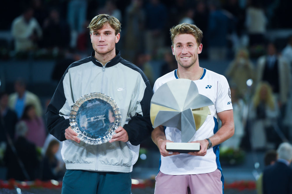 5月4日,鲁德(右)与德雷珀在颁奖仪式上合影。新华社发(古斯塔沃·巴连特摄)