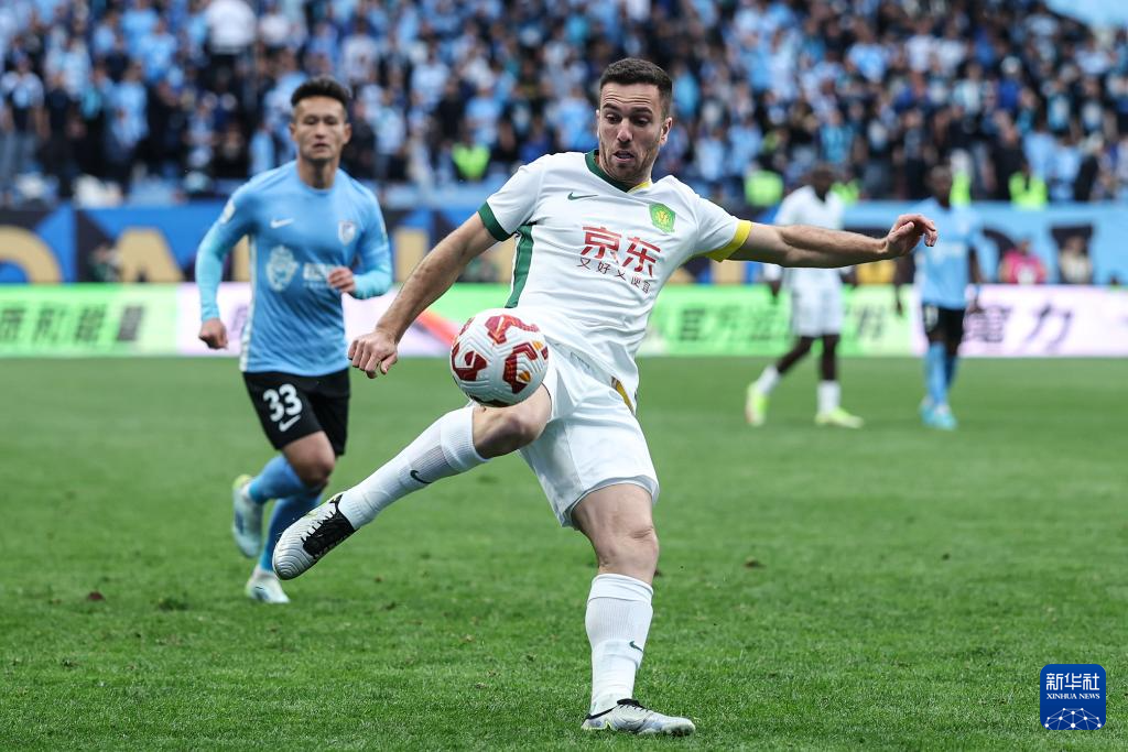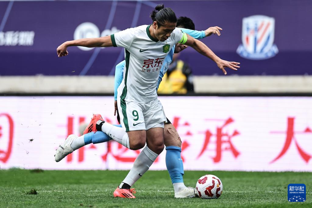 5月5日,北京国安队球员塞尔吉尼奥(前)在比赛中传球。