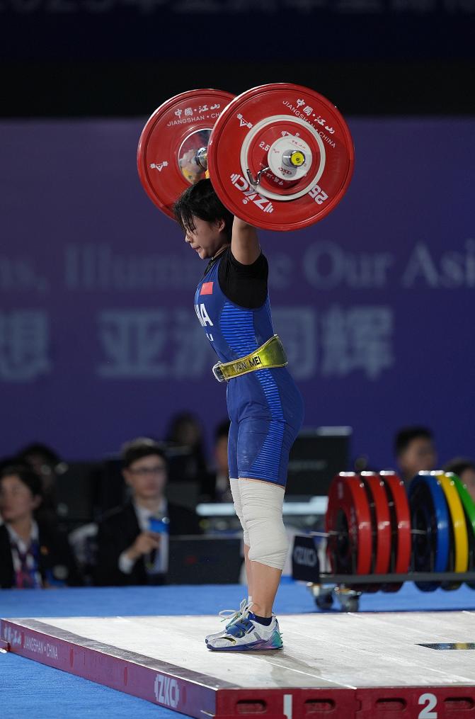 新华社北京5月9日电(记者郁思辉)2025年亚洲举重锦标赛9日在浙江省江山市开赛。首日进行的女子45公斤级比赛中,中国选手赵金红刷新抓举世界纪录并夺得三金。