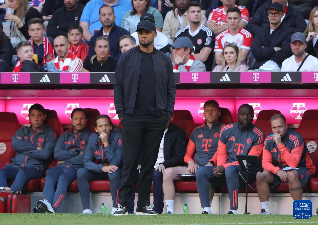 5月10日,拜仁慕尼黑队主教练孔帕尼在场边观赛。