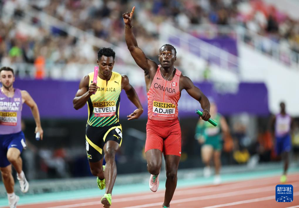 当日,2025年世界田联接力赛混合4x100米接力决赛在广州天河体育中心举行。