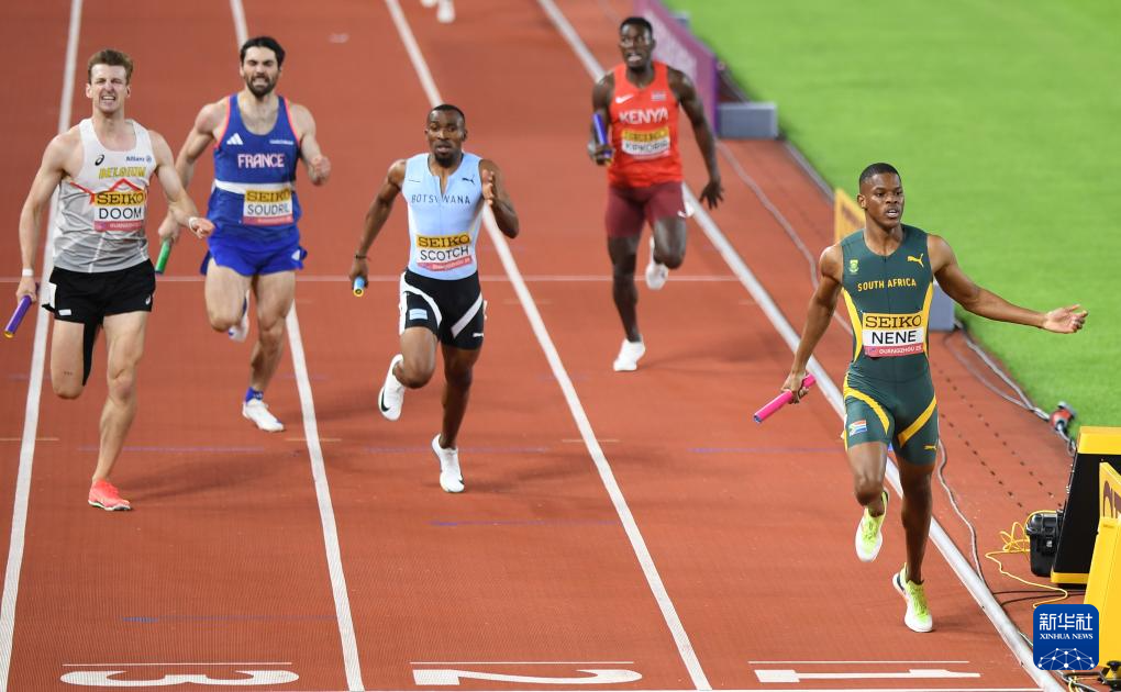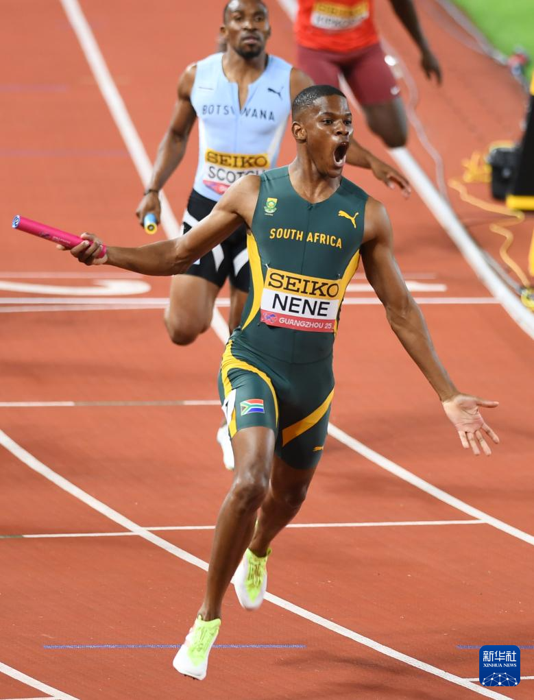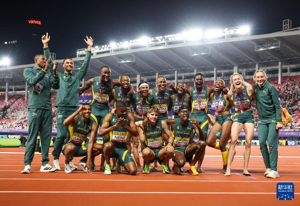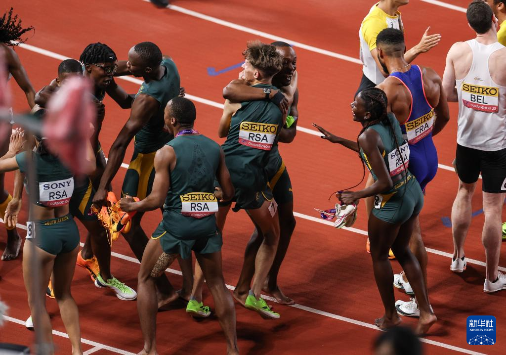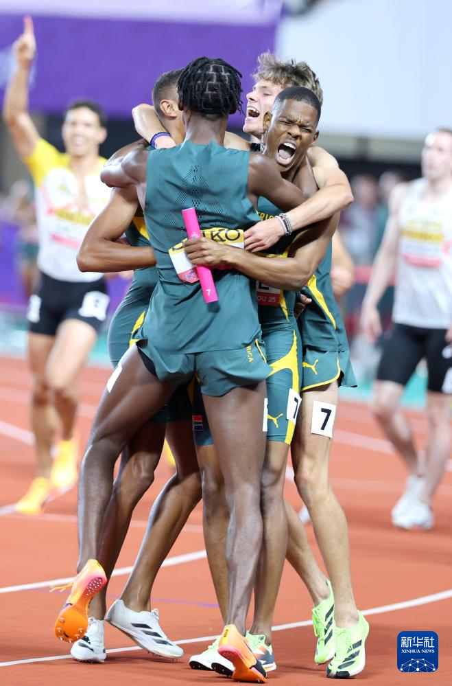 当日,在广州天河体育中心举行的2025年世界田联接力赛男子4x400米决赛中,南非队以2分57秒50的成绩获得冠军。
